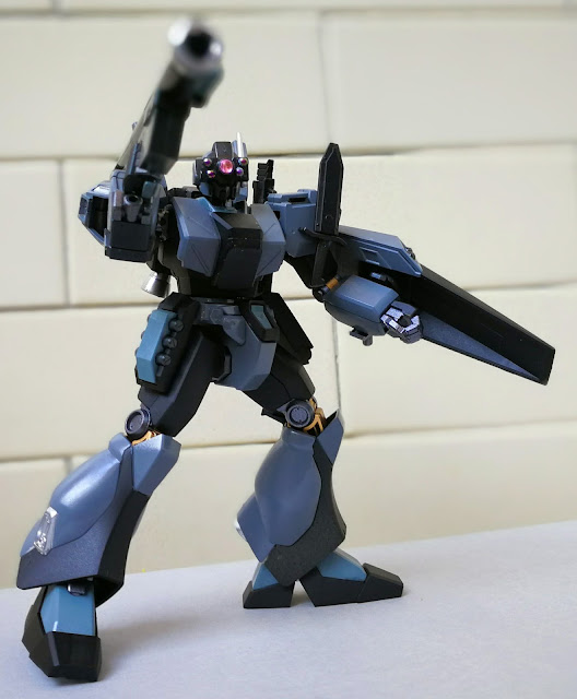 To achieve its clandestine objectives, this limited production variant of the Jegan had all its mobility limiters removed, bore a layer of special sensor-deflecting coating and was armed with a veritable armoury of weapons including an advanced bullpup assault rifle, a regular rapid-fire type beam rifle, a dual-magazine hyper bazooka, a beam handgun, a box beam saber fitted to the right forearm, a combat knife sheathed to its left shoulder, a grenade rack, a fire-nut dispenser as well as the standard Jegan shield armed with two missile launchers. This Jegan also featured a modified backpack that allowed for weapons to be switched quickly thanks to the usage of magnetic hard points.