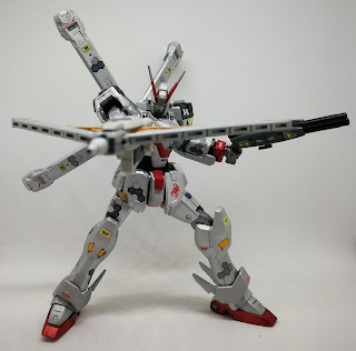 The Crossbone Gundam X-0 differs from its other brethren in that it is not equipped with the Beam Zanber or Buster Gun (although both are still included with the HGUC kit), instead it is armed with a pair of experimental variable beam shotguns called the Butterfly Buster. In its default mode, the weapon functioned as a formidable beam shotgun/cannon and it can fold open to reveal two powerful beam emitters that generated a massive blade said to be able to cut through 20 ordinary beam sabers.