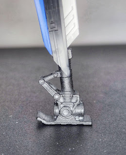 The model kit doesn't come with an action base but has a plain grey base plate and a pair of standing gear which attach to the muzzle of the plasma cannons and greatly improve the Freedom's stability when the unit is put in "parking mode".